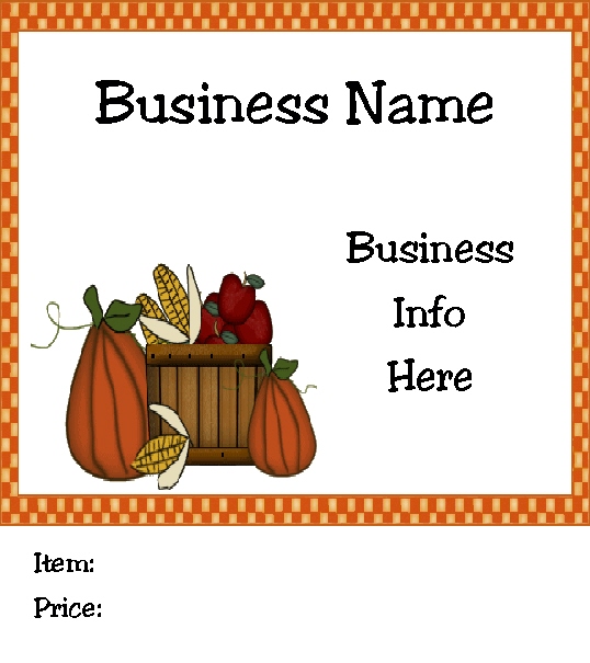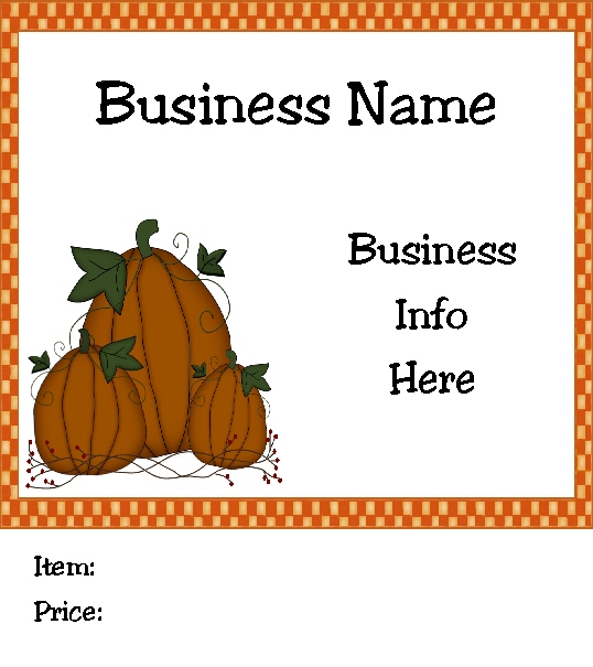 FALL HANG TAGS 2x2" Bottom of tag says item and price.